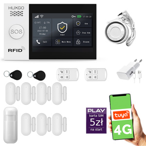 Alarm bezprzewodowy WiFi + GSM 4G - zestaw alarmowy HUXGO z aplikacją TUYA - HXA006 4G W R3 PS z syreną przewodową