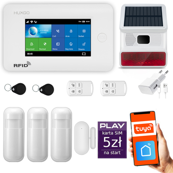 - Bezprzewodowy zestaw alarmowy HUXGO HXA006 2G W R3 BS dzięki modułom WiFi i GSM umożliwia sterowanie alarmem przez SMS i aplikację Tuya Smart 24h/7. Idealne rozwiązanie do altan, garaż, domków letniskowych, biur, mieszkań i domów. Menu w języku polskim.